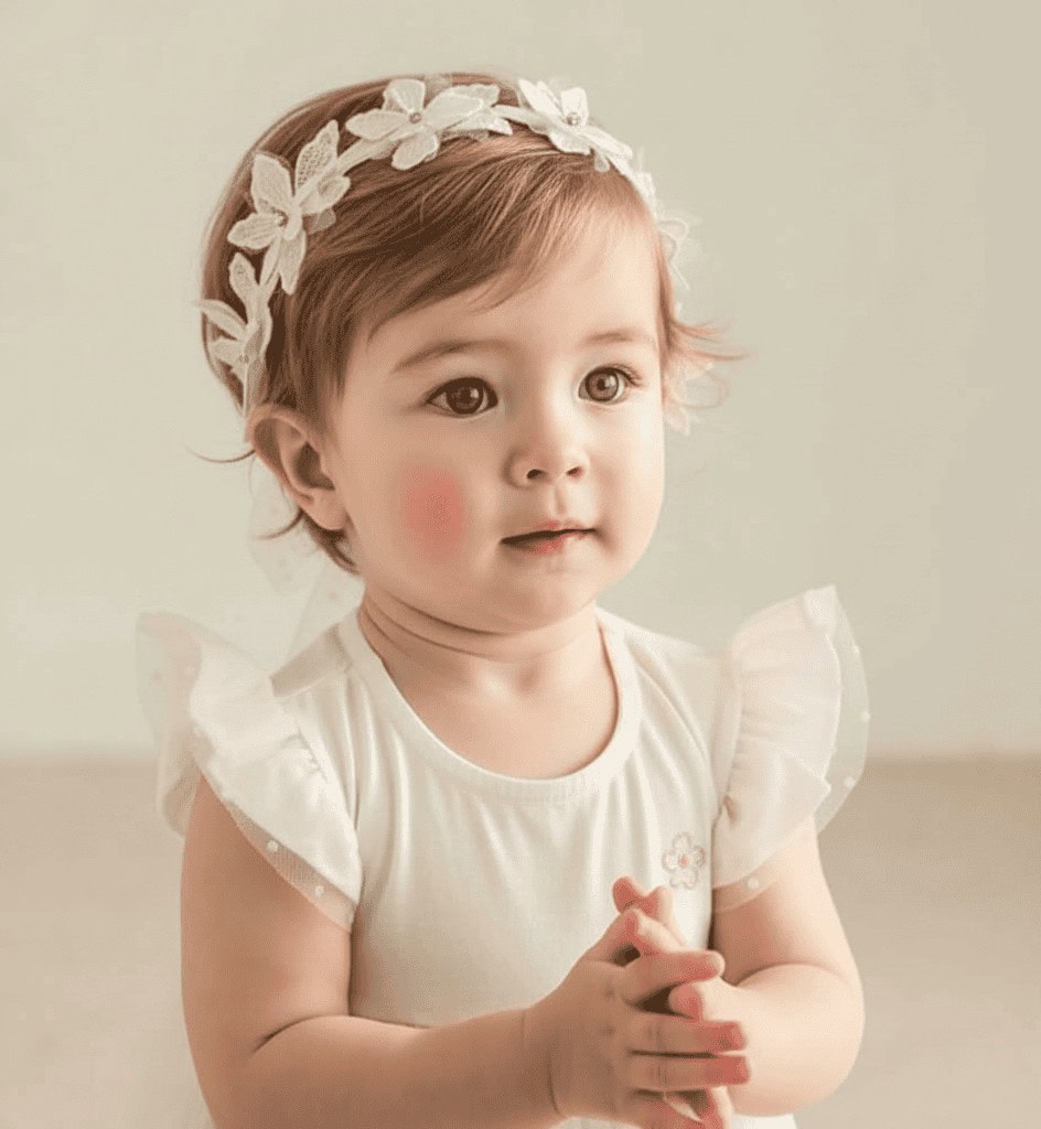 Raffiné et plein de tendresse, le Bandeau Bébé Fleuri Blanc 0-6ans sublime les tenues de votre petite fille avec élégance. Confectionné en dentelle fine et tulle délicat, il est décoré de fleurs brodées aux pétales ajourés, chacune ornée d’un petit strass scintillant en leur cœur. Grâce à sa matière souple et élastique, il s’adapte parfaitement à la tête de bébé sans la marquer, offrant un confort absolu dès la naissance jusqu’à 6 ans. Son nœud en tulle à pois à nouer à l’arrière apporte une touche poétique et gracieuse. Un accessoire idéal pour les baptêmes, séances photo, anniversaires ou cérémonies spéciales.