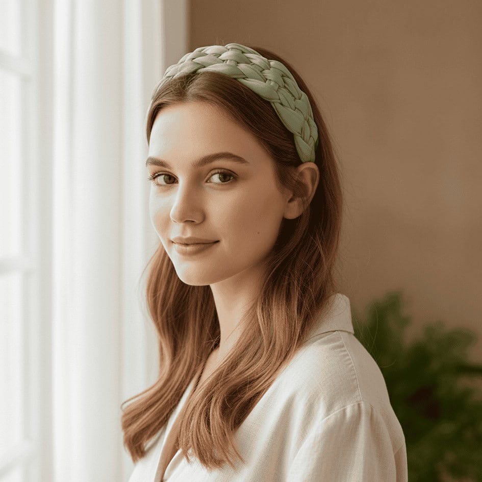 Serre-Tête Large en Tissu Tressé Vert Kaki