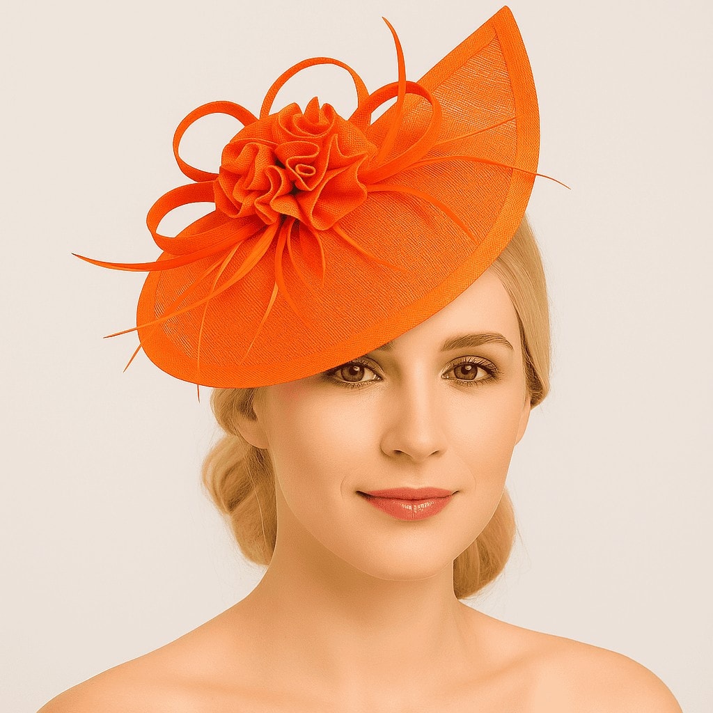 Vibrant et audacieux, le Serre-Tête Pince Chapeau de Mariage Orange apporte une touche de fraîcheur et d’énergie à vos tenues de cérémonie. Sa grande fleur stylisée en tissu effet lin, accompagnée de rubans fins et dynamiques, évoque l’élégance britannique dans une version moderne et lumineuse. Léger et agréable à porter, il se fixe facilement grâce à sa pince intégrée ou peut être maintenu avec son serre-tête assorti. Idéal pour les mariages, garden-parties et événements chics, cet accessoire illumine le visage et attire le regard avec raffinement.