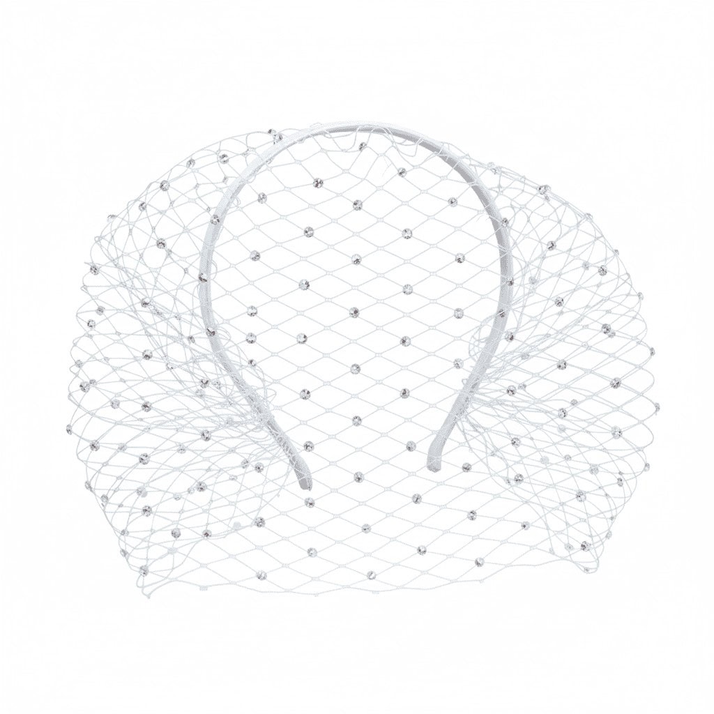 Serre-Tête Voilette Mariage Résille Strass Blanc